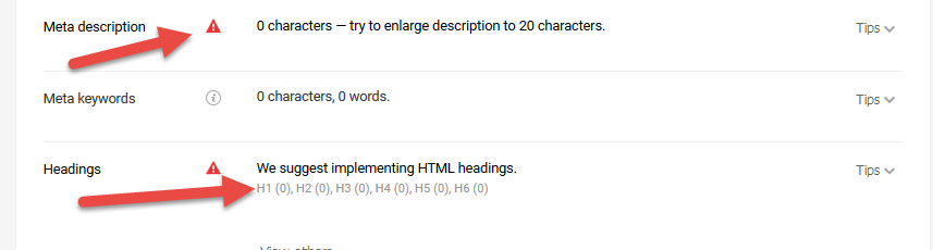 phần mềm SEOQuake có báo đó bạn, nó báo thiếu h1, description, sitemap, roboots.txt như hình dưới đó bạn