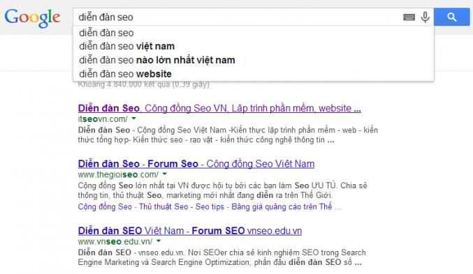 • Hoặc có thể nói là từ 'diễn đàn seo việt nam' được người dùng tìm nhiều nhất sau khi gõ tiếp từ 'diễn đàn seo'
