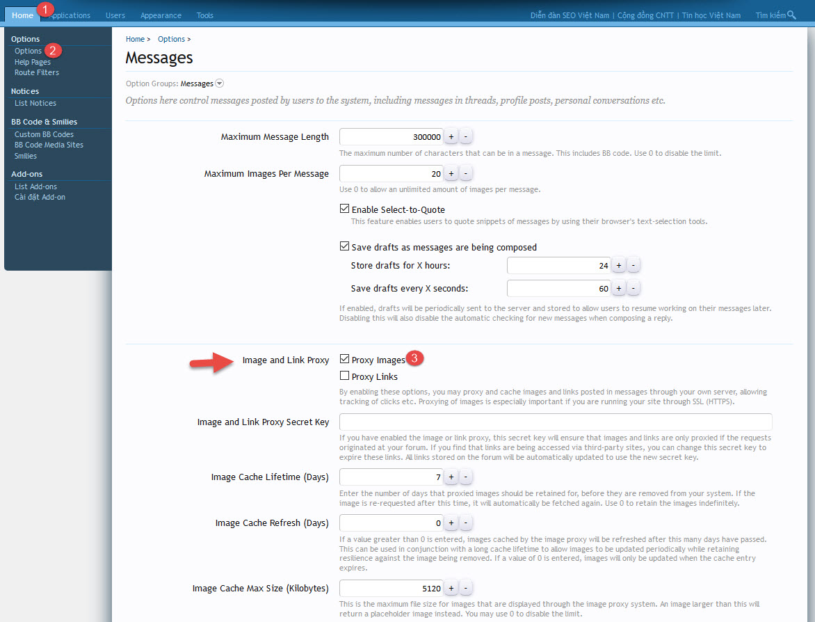 • Kéo xuống dưới ở mục Image and Link Proxy bạn click chọn Proxy Images rồi save lại là được ngay nhé.