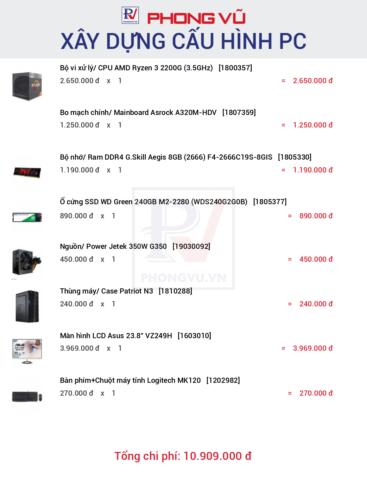 Nhờ tư vấn máy tính gia đình tầm 10 triệu